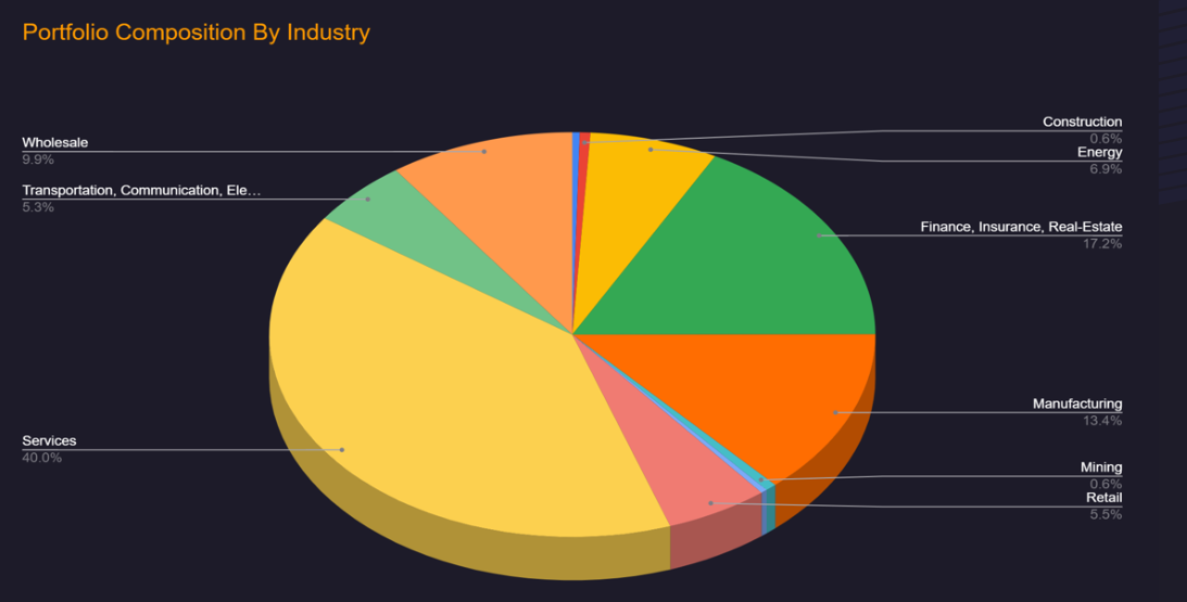 The chart below is a bird’s-eye view of the BDCs aggregate Industry Diversification.