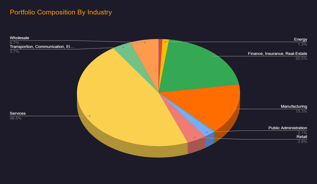 The chart below is a bird’s-eye view of the BDCs aggregate Industry Diversification.