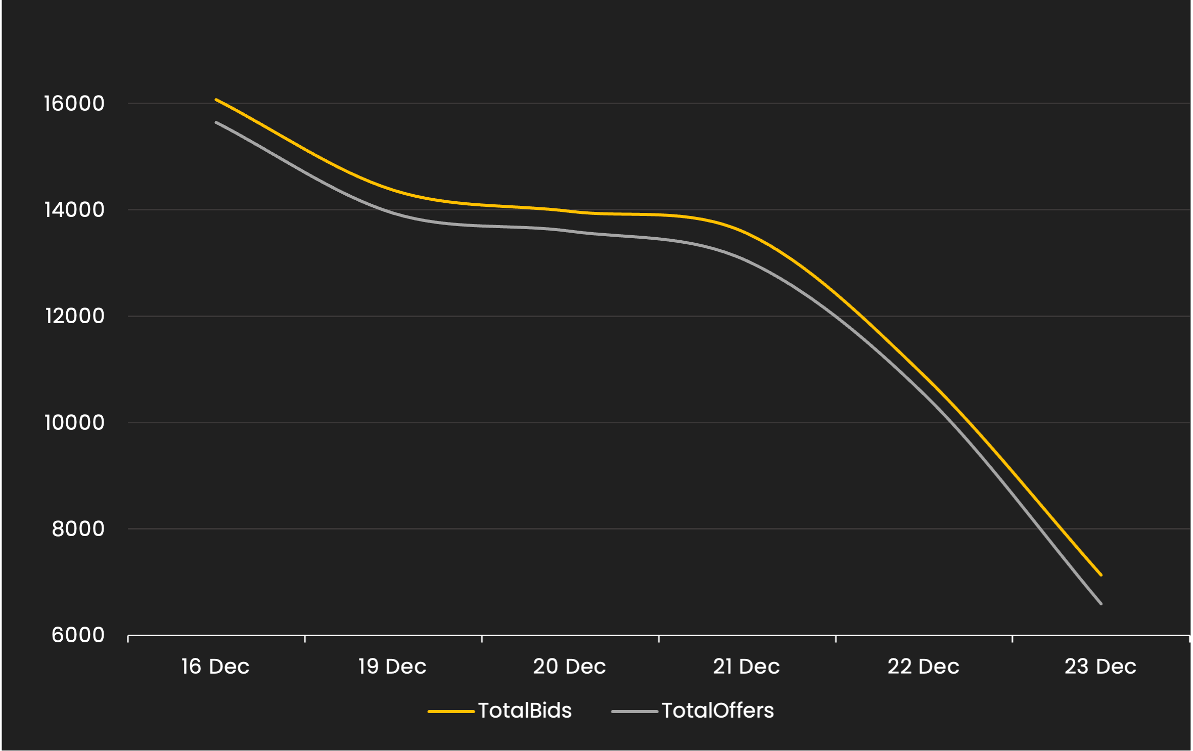 Reveals the total number of quotes by bid and offer between 12/16/22 – 12/23/22