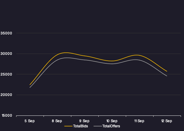 Reveals the total number of quotes by bid and offer between 9/5/25-9/12/25