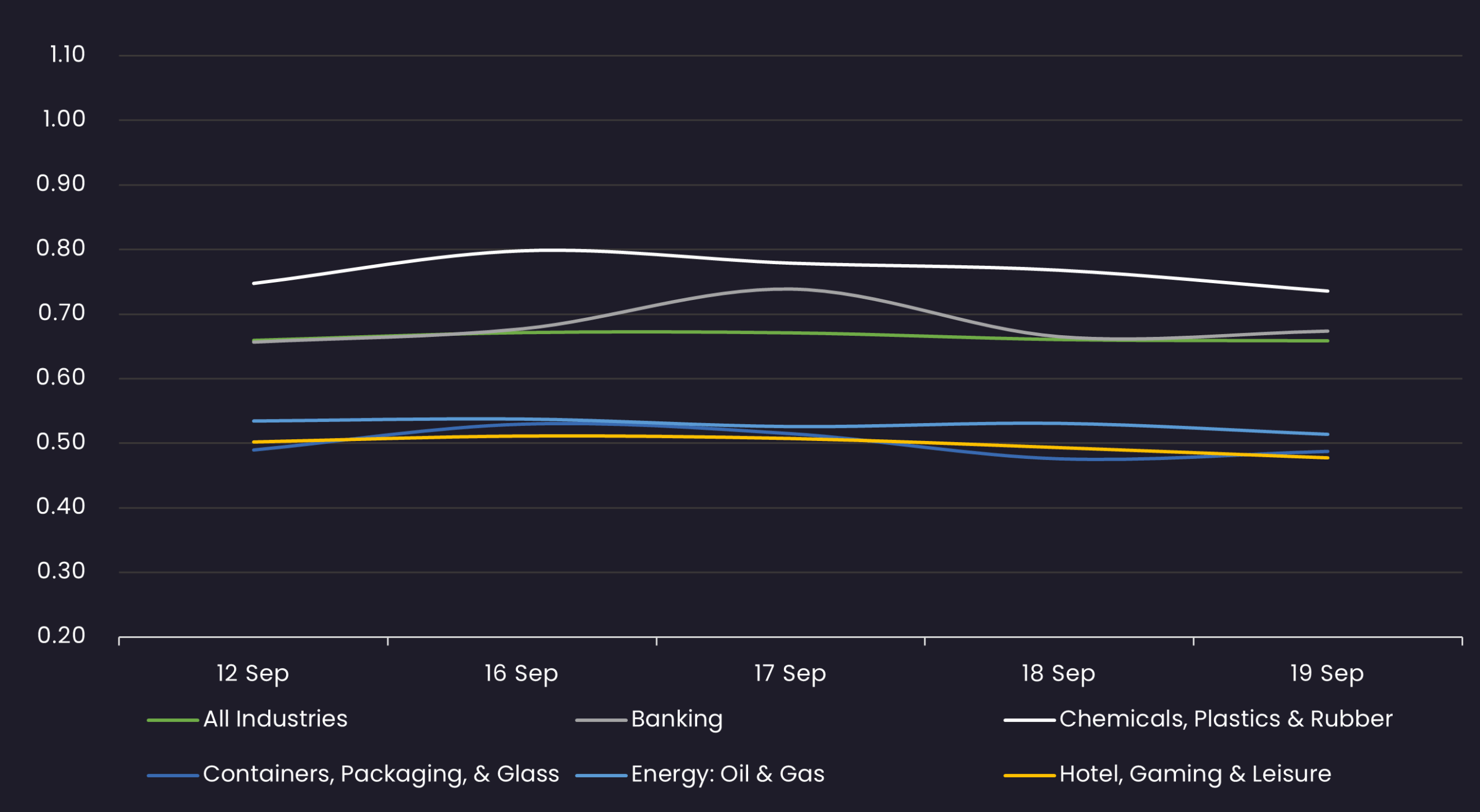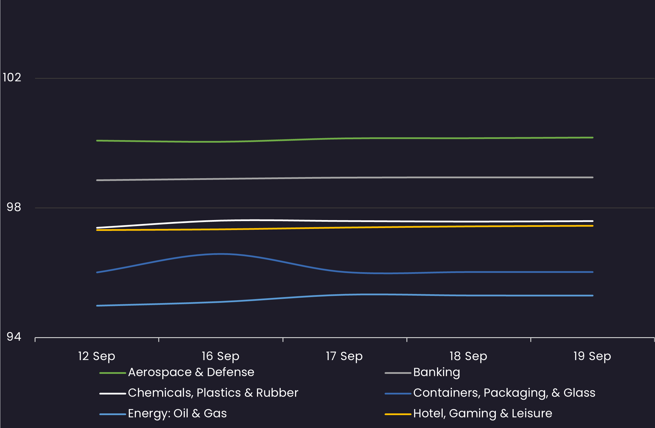 Displays the HY Corp average industry price by sector between 9/12/25 – 9/19/25 Results are based on 5 select industry sectors, however, we offer data across 36 sectors