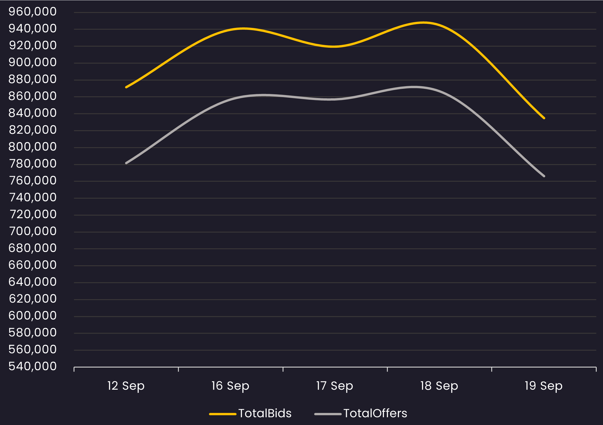 Reveals the total number of quotes by bid and offer between 9/12/25 – 9/19/25