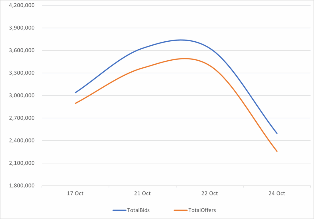 Reveals the total number of quotes by bid and offer between 10/17/25 – 10/24/25