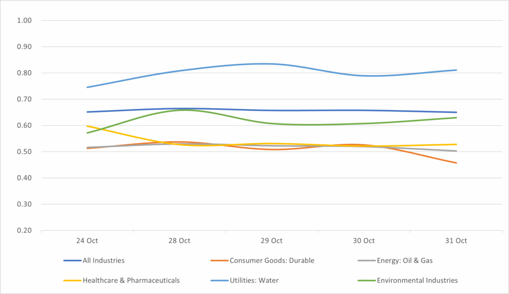 Displays the HY Corp average industry price by sector between 10/24/25 – 10/31/25 Results are based on 5 select industry sectors, however, we offer data across 36 sectors