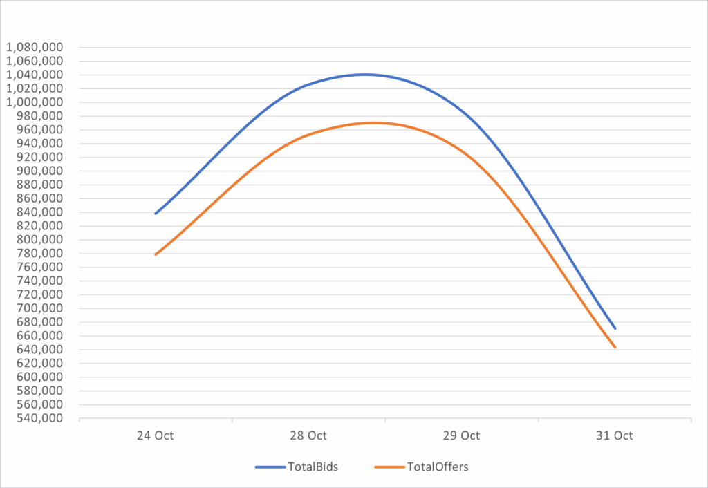 Reveals the total number of quotes by bid and offer between 10/24/25 – 10/31/25