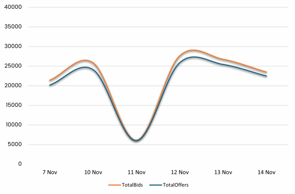 Reveals the total number of quotes by bid and offer between 11/7/25-11/14/25