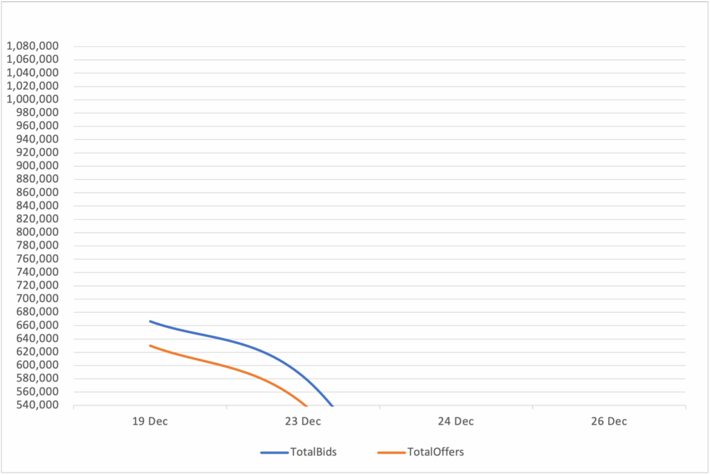 Reveals the total number of quotes by bid and offer between 12/19/25 – 12/26/25