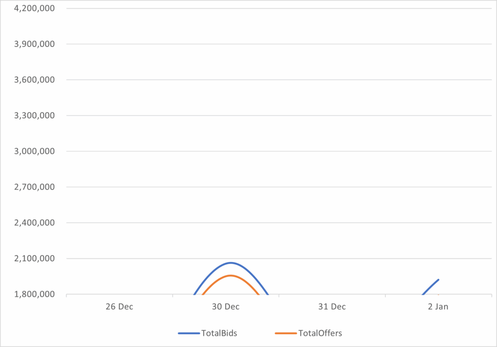 Reveals the total number of quotes by bid and offer between 12/26/25 – 1/2/26