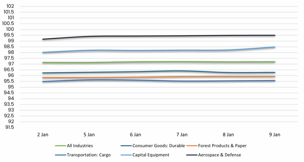 Displays the average loan bid price by sector between 1/2/26-1/9/26. Results are based on select industry sectors, however, we offer data across 36 sectors