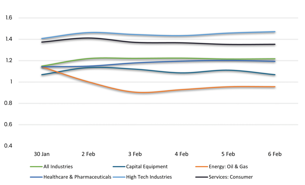 Displays the average loan bid price by sector between 1/30/26-2/6/26. Results are based on select industry sectors, however, we offer data across 36 sectors