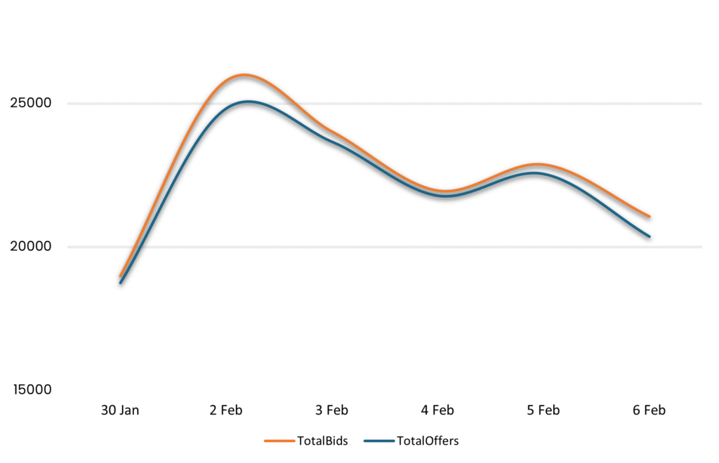 Reveals the total number of quotes by bid and offer between 1/30/26-2/6/26