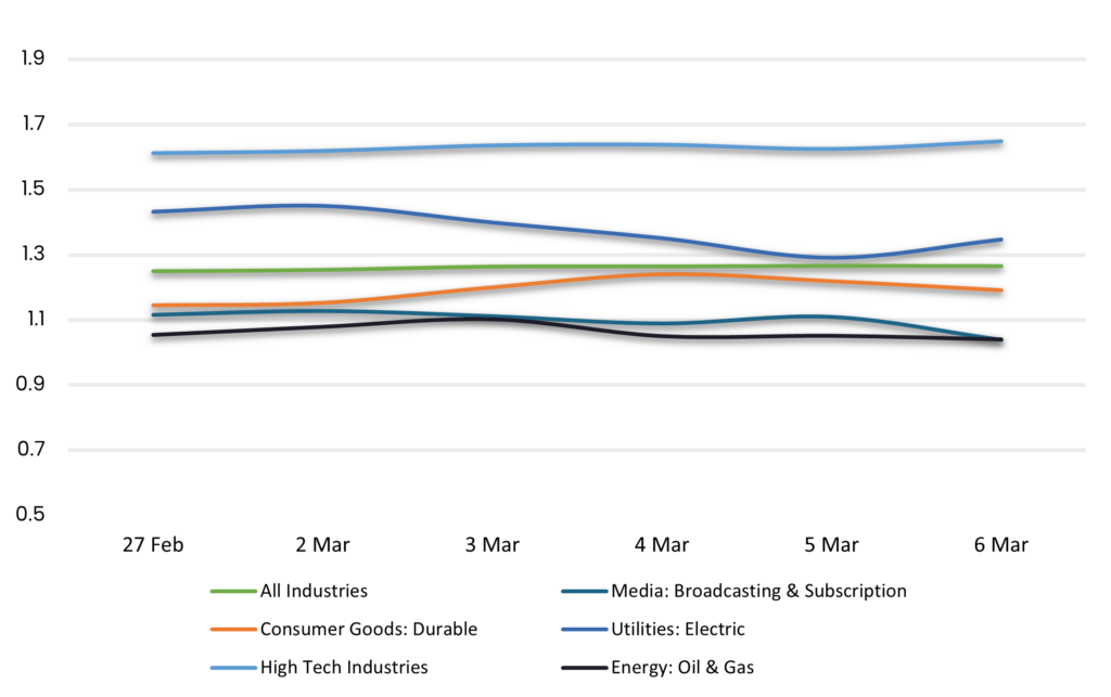 Displays the average loan bid price by sector between 2/27/26-3/6/26. Results are based on select industry sectors, however, we offer data across 36 sectors