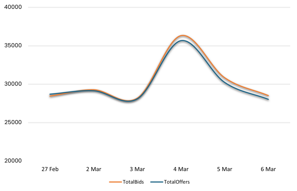 Reveals the total number of quotes by bid and offer between 2/27/26-3/6/26