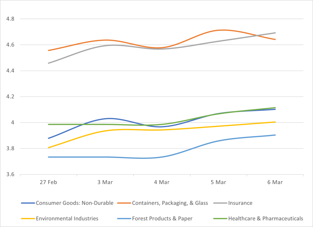 | 3 | Containers, Packaging, & Glass | ▲ 9 bps | 4.64% | 4.56% |