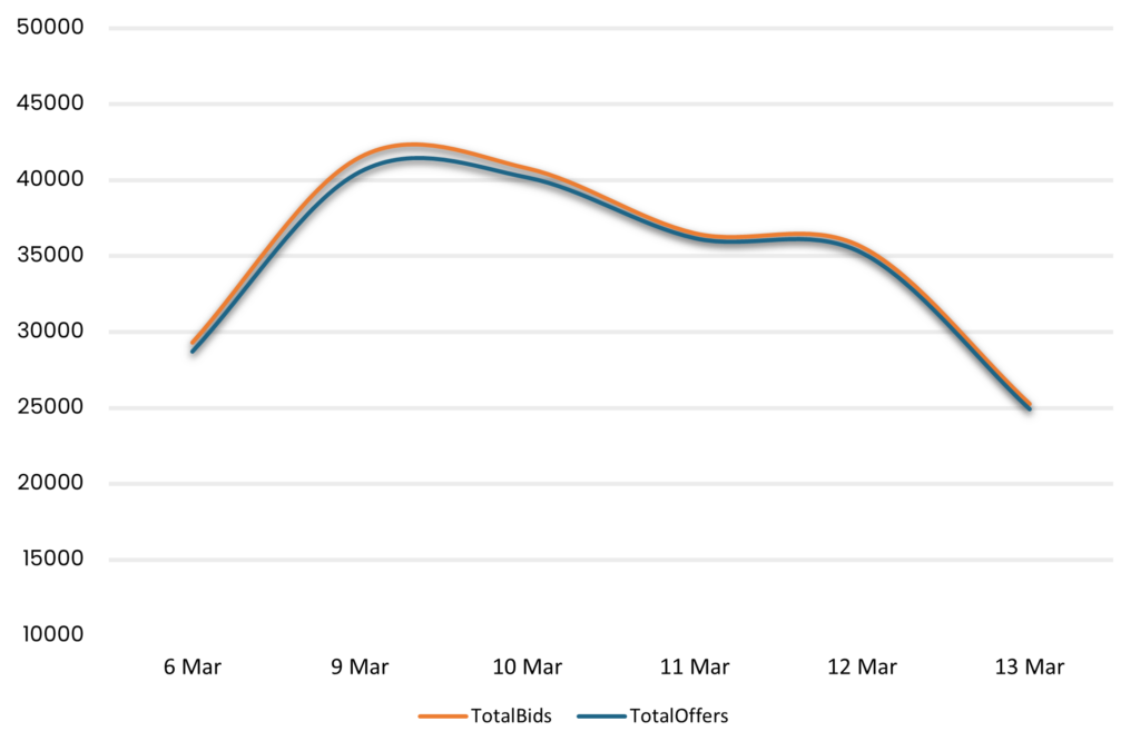 Reveals the total number of quotes by bid and offer between 3/6/26-3/13/26