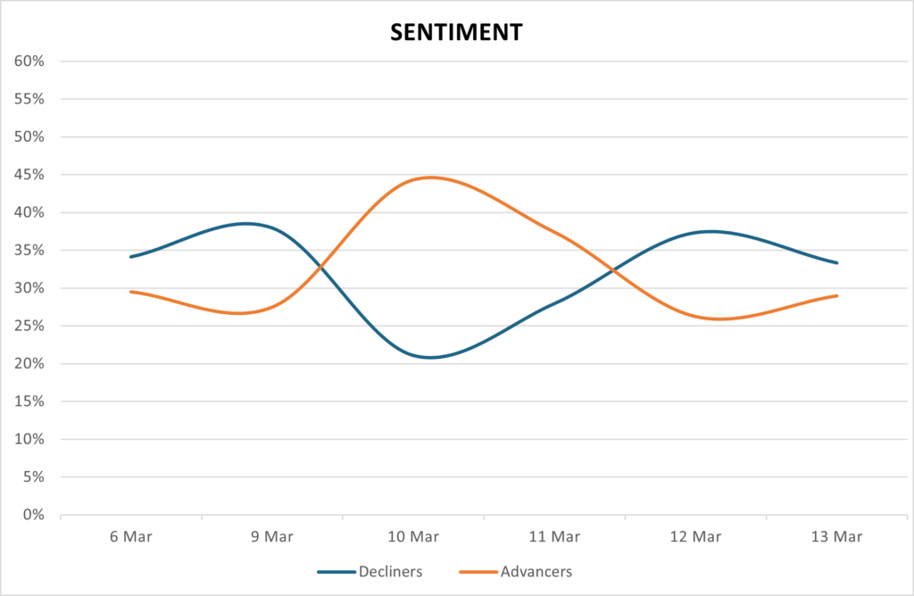Reveals the percent of loans increasing in price (advancers) vs. loans decreasing in price (decliners) between 3/6/26-3/13/26