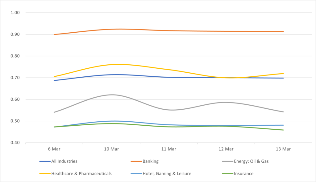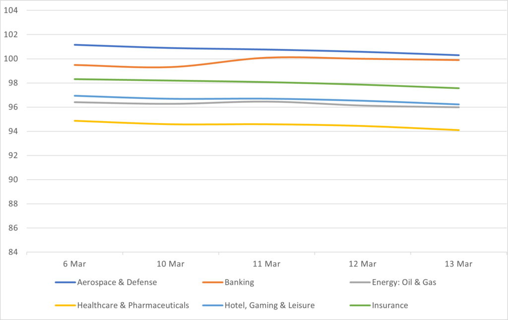 Displays the HY Corp average industry price by sector between 3/6/26 – 3/13/26. Results are based on select industry sectors, however, we offer data across 36 sectors.