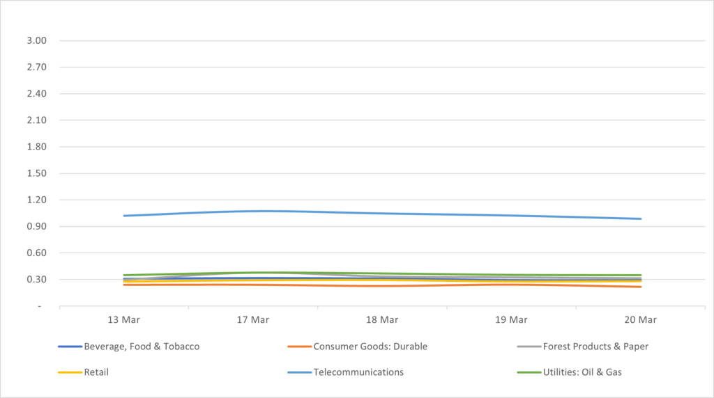 | 7 | Telecommunications | ▲ 17 bps | 4.69% | 4.51% |