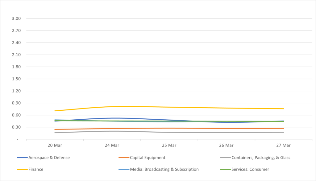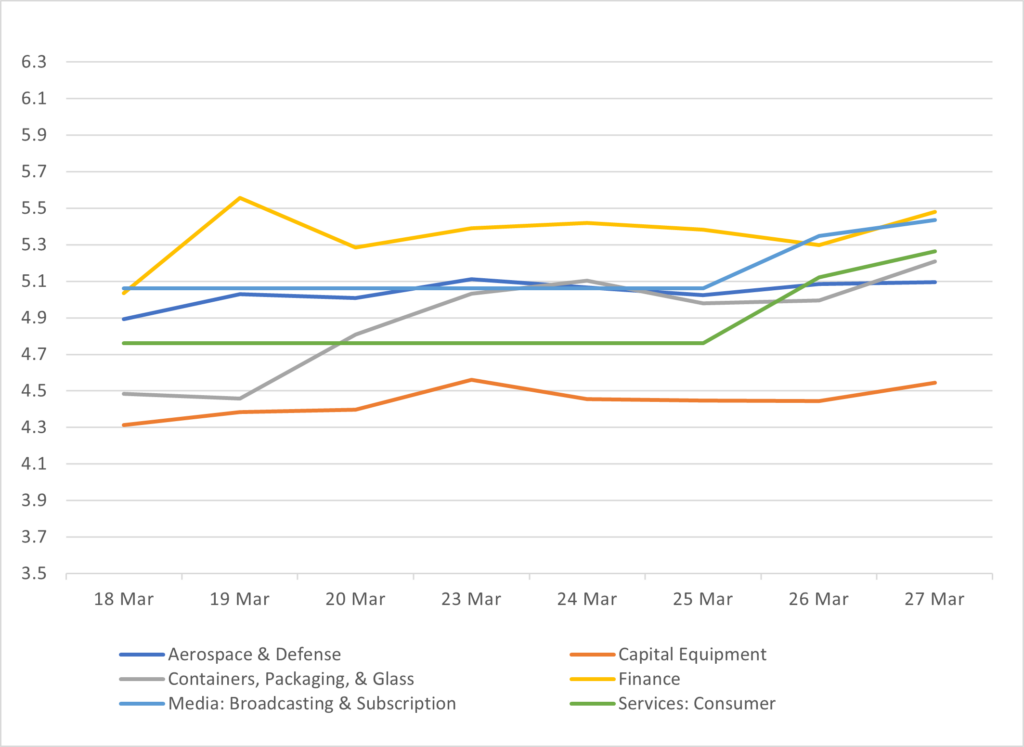 | 4 | Aerospace & Defense | ▲ 9 bps | 5.10% | 5.01% |