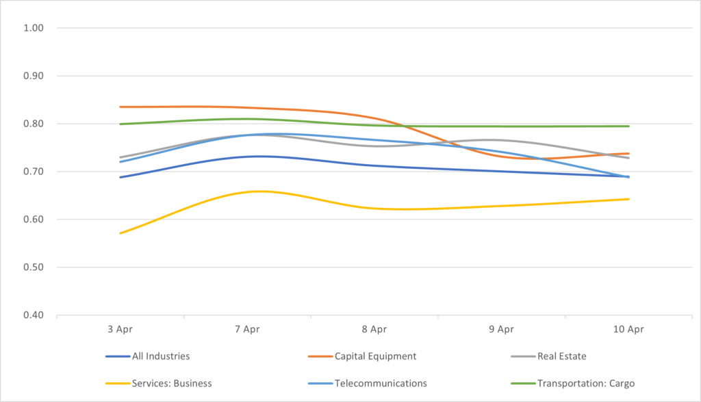Displays the HY Corp average industry price by sector between 4/3/26 – 4/10/26. Results are based on select industry sectors, however, we offer data across 36 sectors.