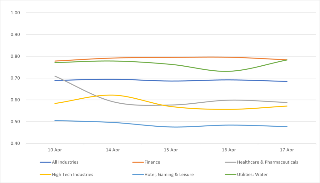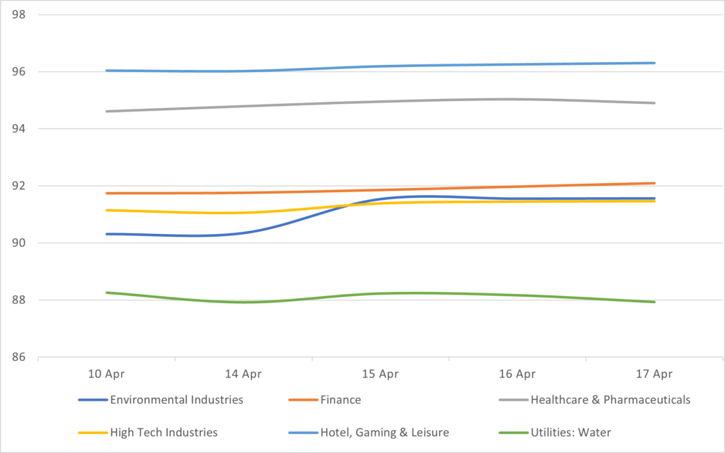 Displays the HY Corp average industry price by sector between 4/10/26 – 4/17/26. Results are based on select industry sectors, however, we offer data across 36 sectors.
