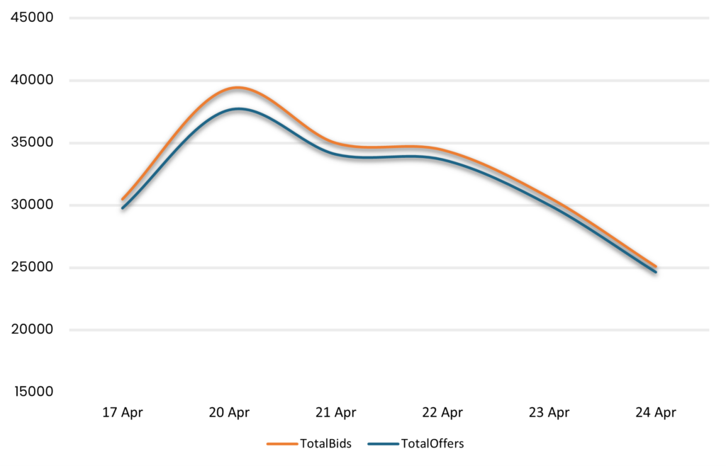 Reveals the total number of quotes by bid and offer between 4/17/26-4/24/26