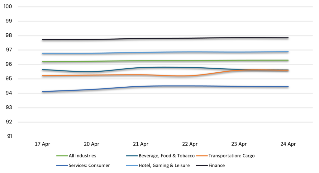 Displays the average loan bid price by sector between 4/17/26-4/24/26. Results are based on select industry sectors, however, we offer data across 36 sectors