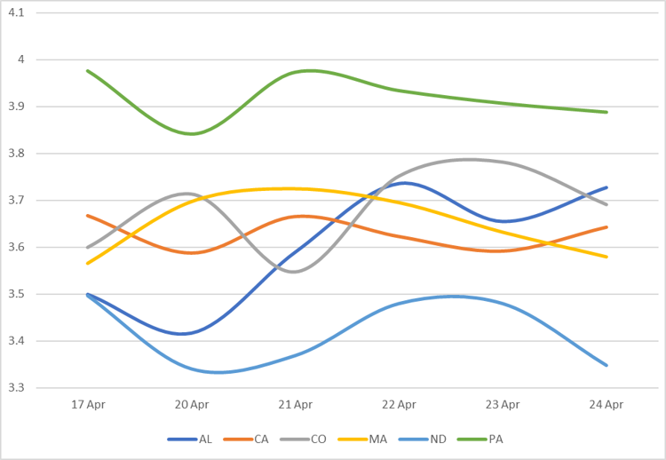 | 10 | AZ | ▲ 6 bps | 3.52% | 3.46% |
