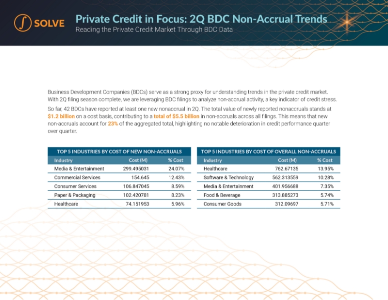 Business Development Companies (BDCs) serve as a strong proxy for understanding trends in the private credit market. With 2Q filing season complete, we are leveraging BDC filings to analyze non-accrual activity, a key indicator of credit stress.