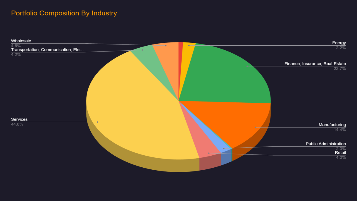 The chart below is a bird’s-eye view of the BDCs aggregate Industry Diversification.