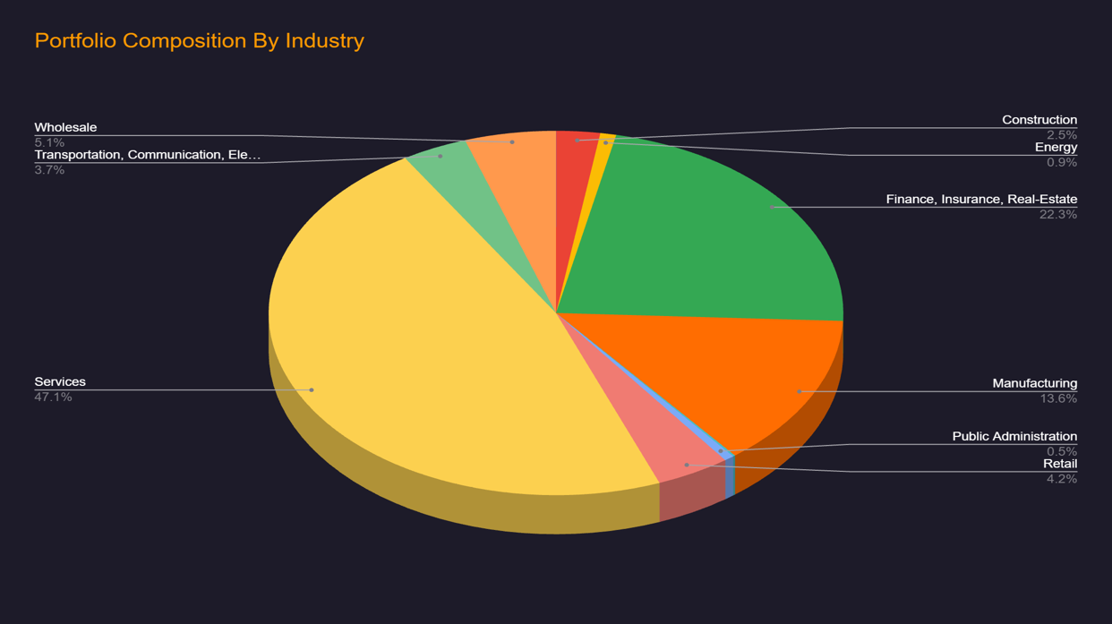 The chart below is a bird’s-eye view of the BDCs aggregate Industry Diversification.