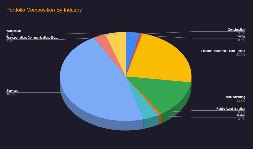 The chart below is a bird’s-eye view of the BDCs aggregate Industry Diversification.
