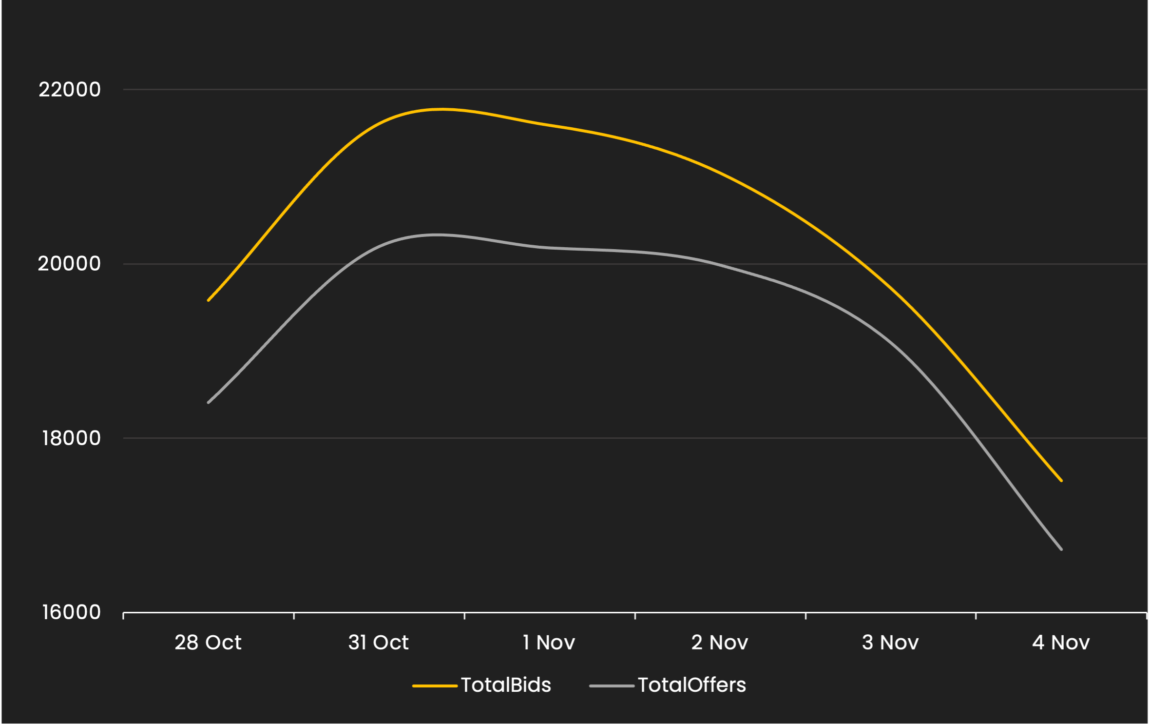 Reveals the total number of quotes by bid and offer between 10/29/21 – 11/5/21