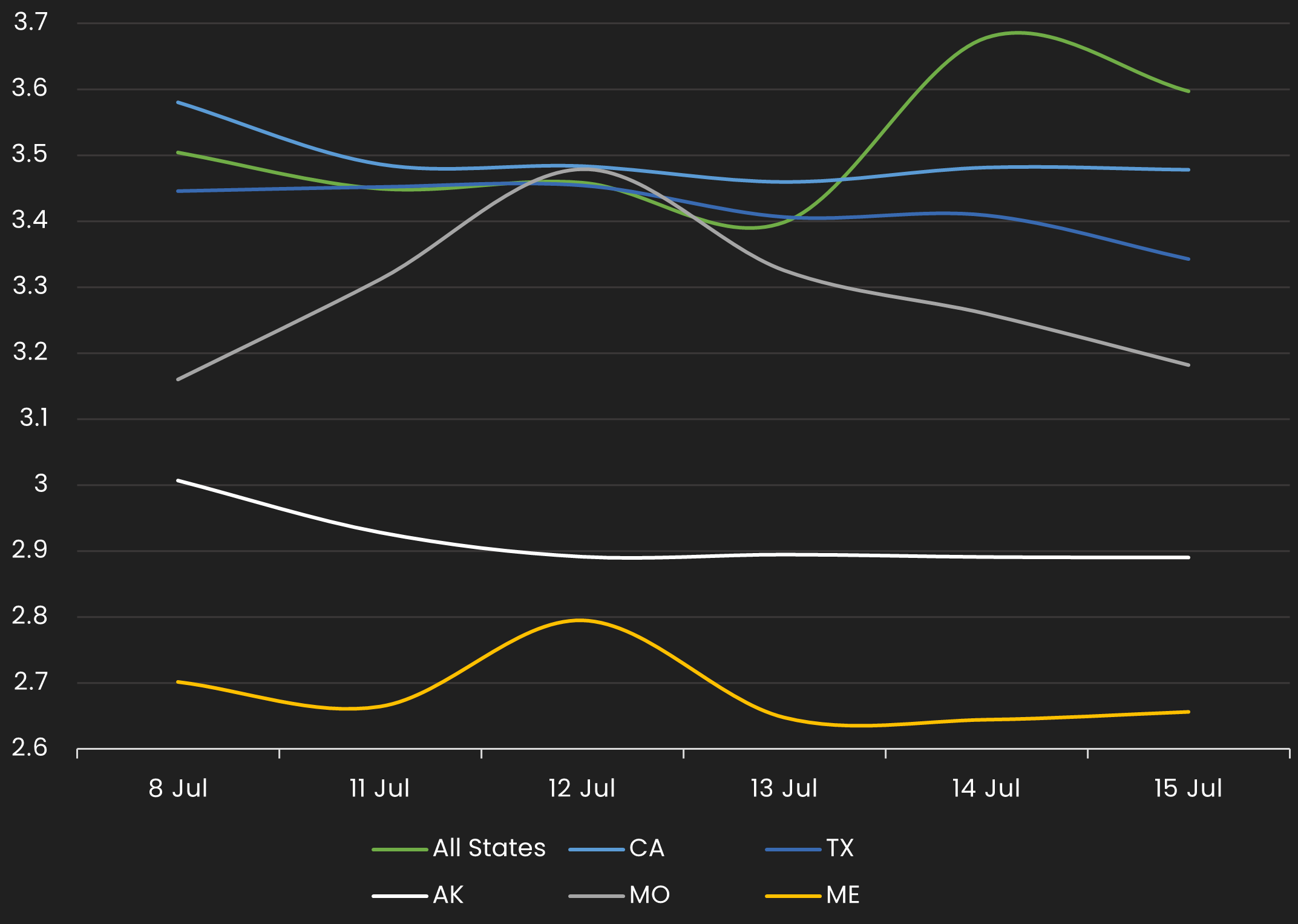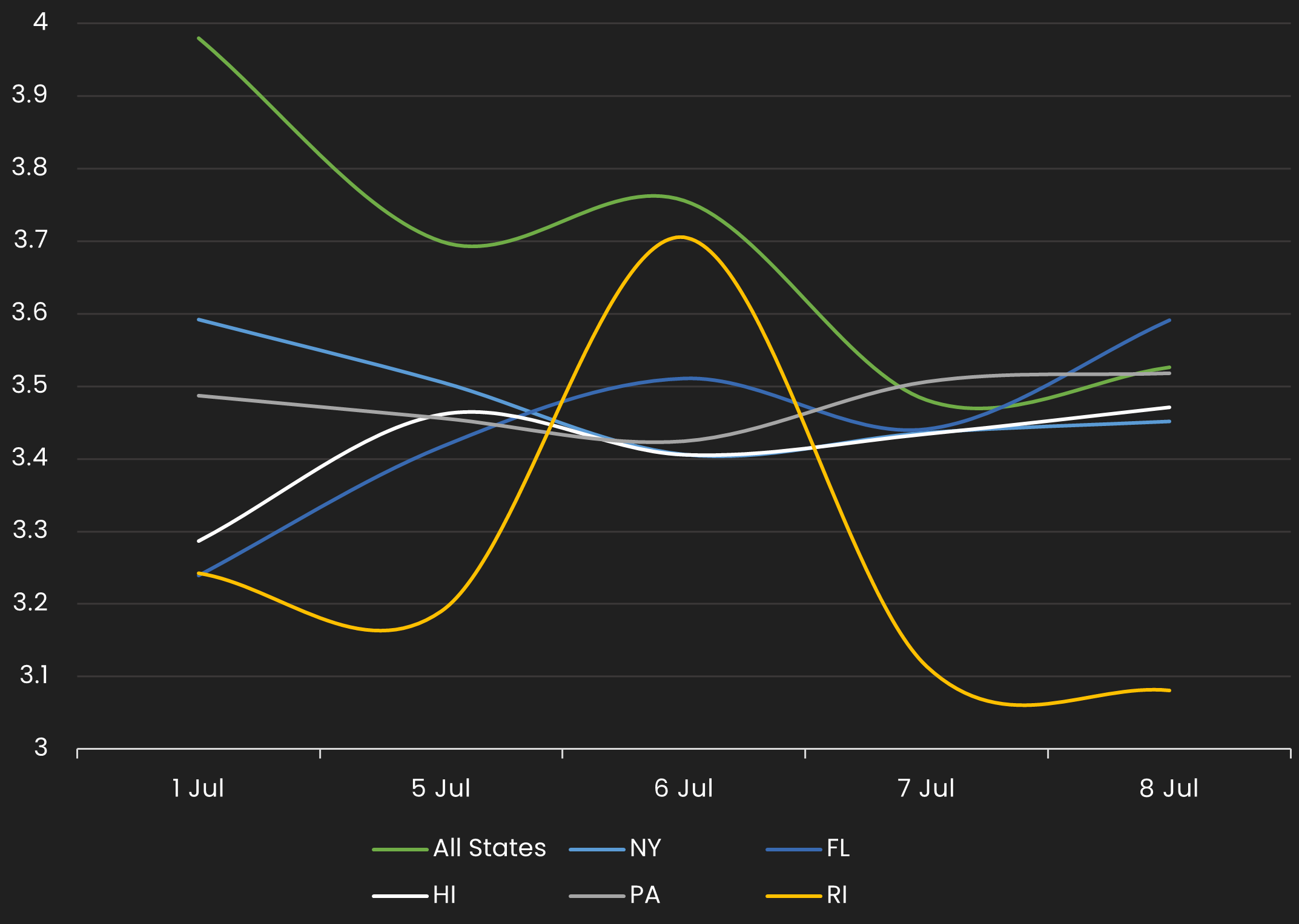 | RANK | STATE | CHANGE | YLD | YLD-1W |