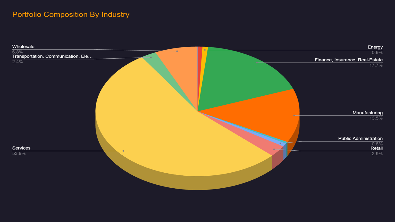 The chart below is a bird’s-eye view of the BDCs aggregate Industry Diversification.