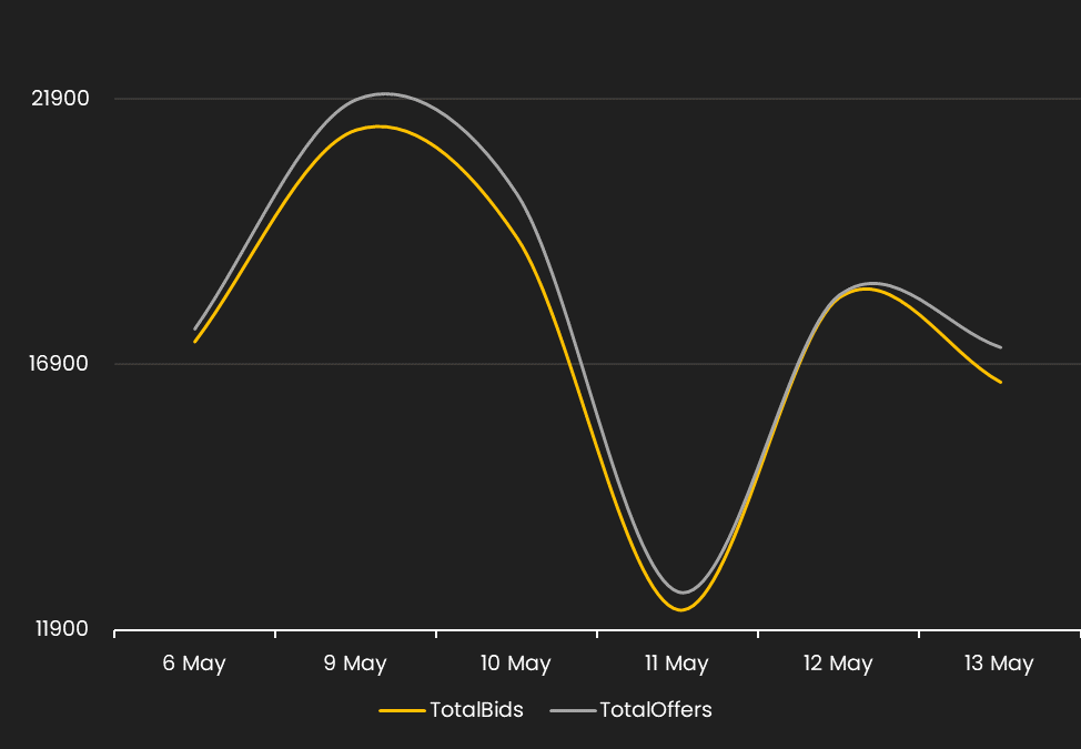Reveals the total number of quotes by bid and offer between 2/11/22 – 2/18/22